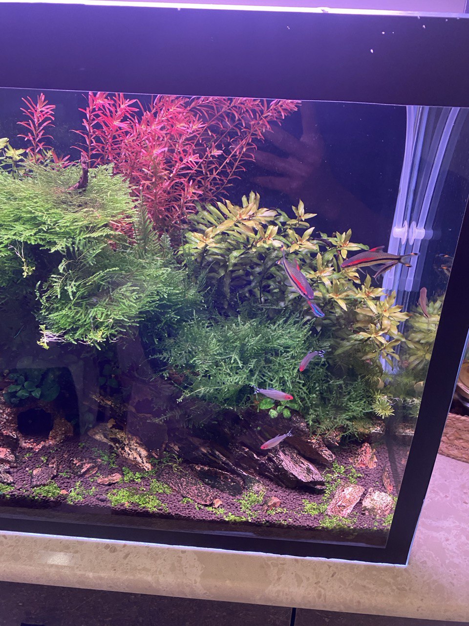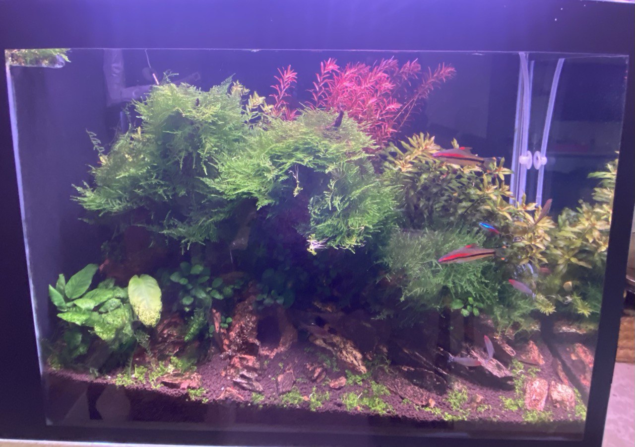 Speaking of inhabitants, our 12-month cycled tank is home to a vibrant community of aquatic life, including the graceful Neon Tetra, the diligent Ottocinclus, and a delightful variety of shrimp species.